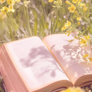 【春の花野にひらく、一冊のやさしい物語】黄色い花が揺れる春の野にそっと開かれた本が、やわらかな空の光を受けながら、穏やかで明るいひとときを映し出すライブ壁紙