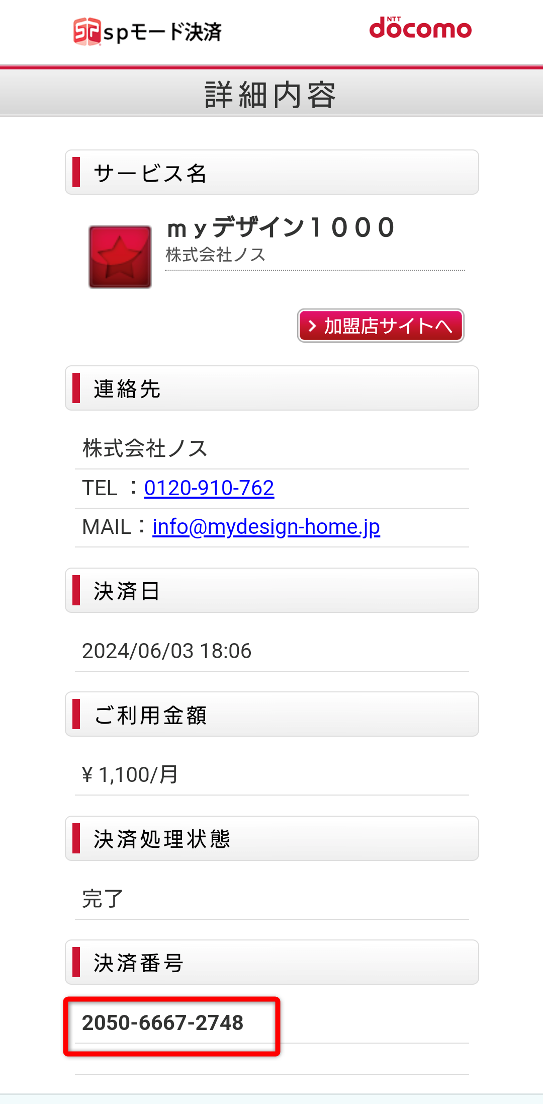 決済番号の確認方法